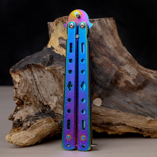 ----Нож бабочка тренировочный хамелеон с расческой Ромбы круги