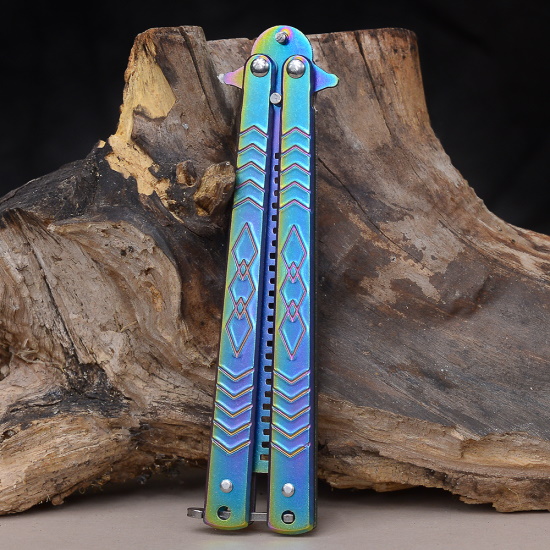 ----Нож бабочка тренировочный с расческой хамелеон Узор ромбы