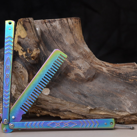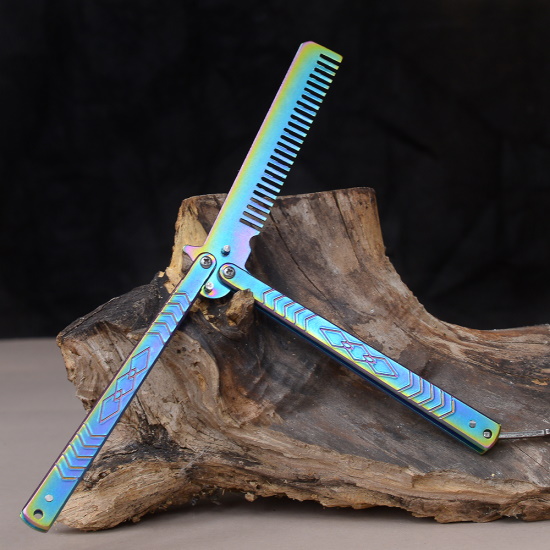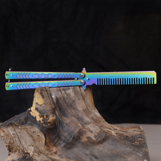 Расчёска бабочка это необычного вида нож, где вместо лезвия у него расческа. Отлично подойдет для тех, кто решил заняться флиппингом (необычные трюки с бабочкой), но не уверен или боится случайно порезаться в процессе обучения. Нож бабочка расческа - идеальное оружие в руках стилиста. Надежный инструмент, жесткая, металлическая.
