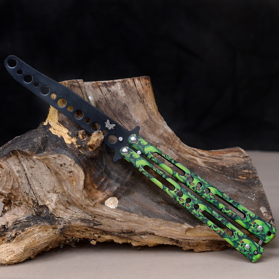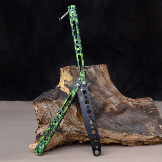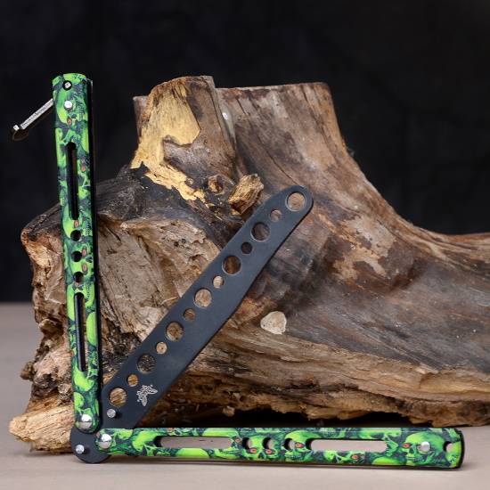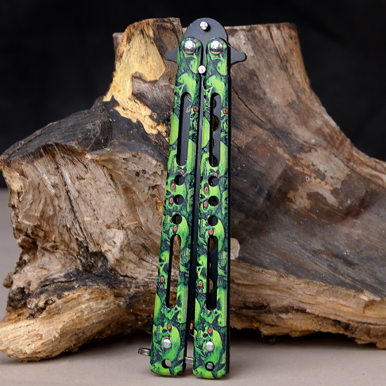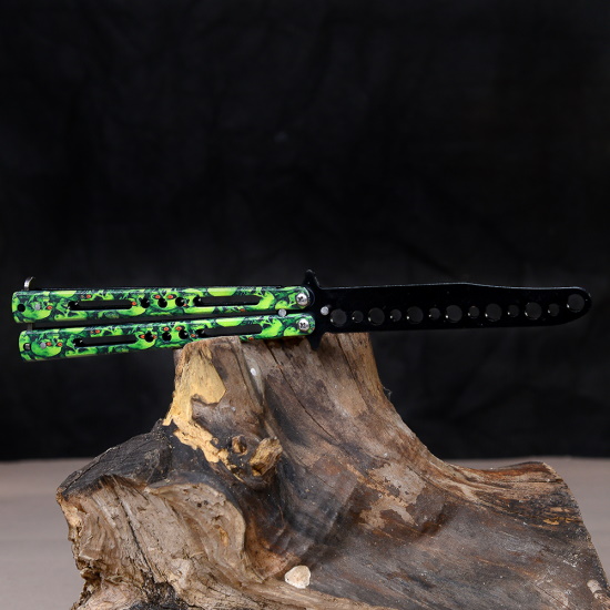 Нож бабочка тренировочный Зеленые черепа