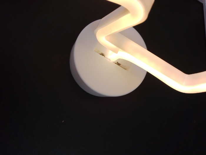 Дефект: основание светильника в подставке уже, чем отверстие в подставке, образуется зазор (фото), работе светильника не мешает. Работает от батареек.