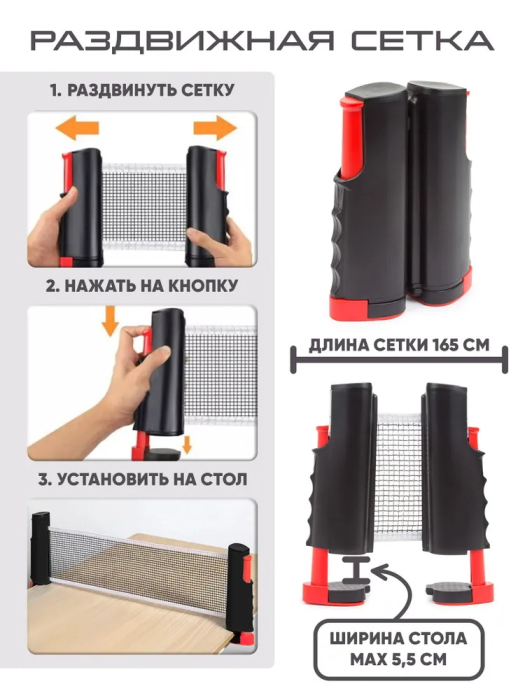 Необходимые предметы для игры включены в набор: 2 ракетки, 3 мяча , сетка. Качественные материалы обеспечивают отличную ударную поверхность и удобство игры.