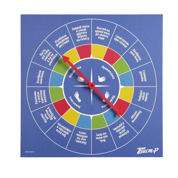 Тогда обратите внимание на рулетку: рядом с каждым сектором написан весёлый фант. Вы можете играть в них вместе с «Твист-ром» или отдельно! Просто принимайте позу, которая выпала на рулетке, и выполняйте забавные задания. Пойте песни, изображайте животных и смешите остальных участников.