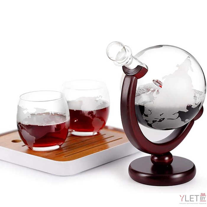 Набор для виски подарочный 2 стакана и графин "Глобус"