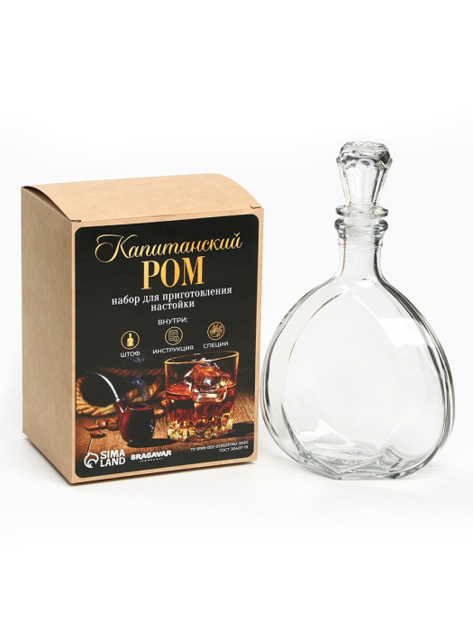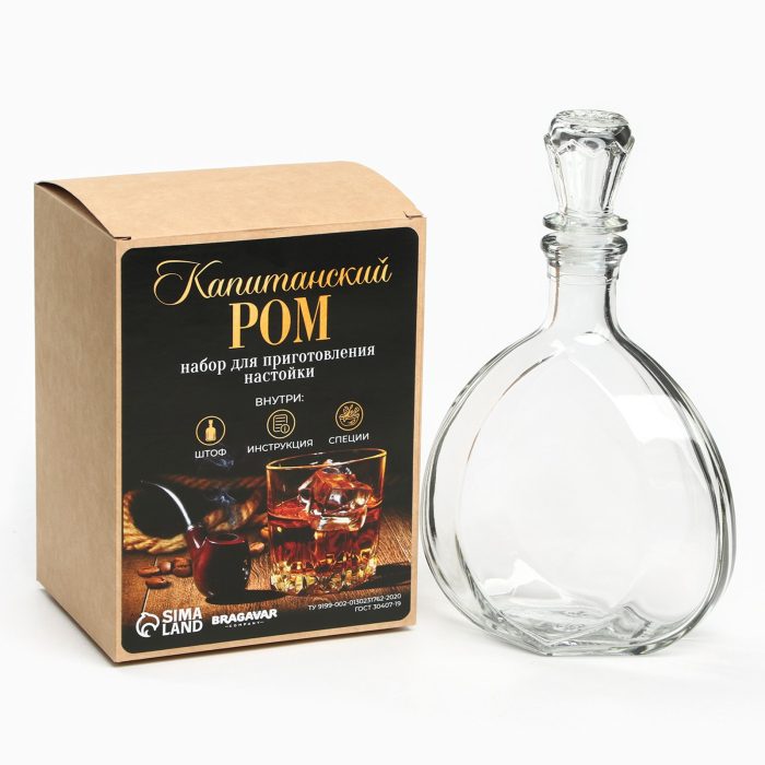 ---Подарочный набор для приготовления настойки «Капитанский ром»: набор трав и специй 17 г., штоф 500 мл., инструкция