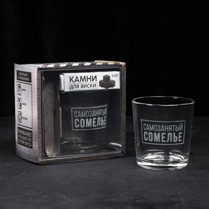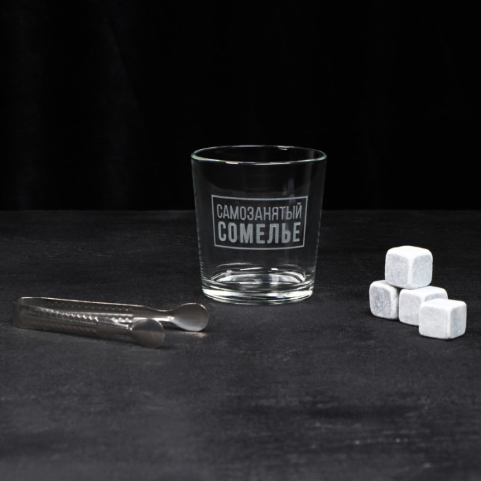 Подарочный набор «Самозанятый»: стакан стеклянный 250 мл, камни для виски, щипцы