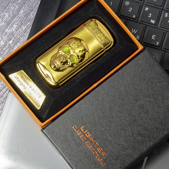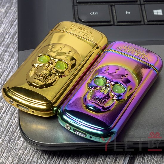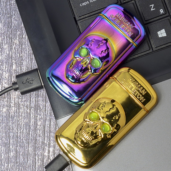 Импульсная зажигалка двойная по взмаху Череп