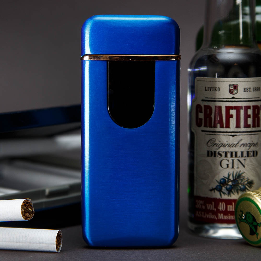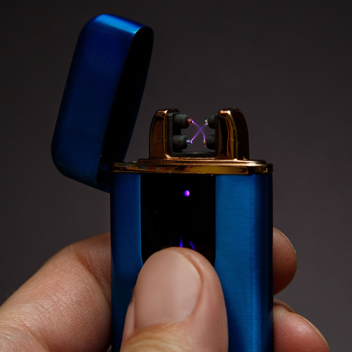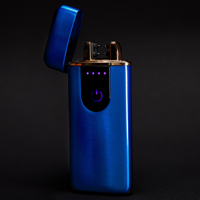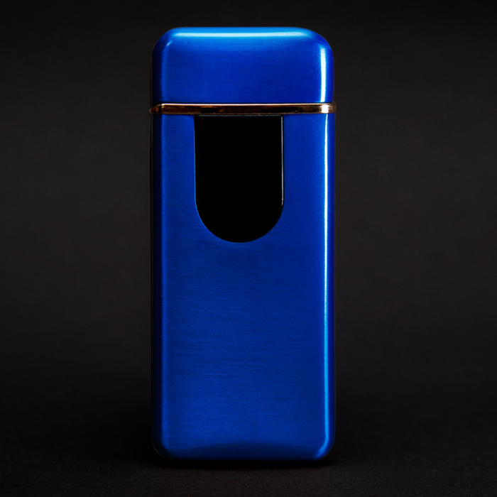 Импульсная зажигалка двойная сенсорная с золотой каймой Синяя матовая