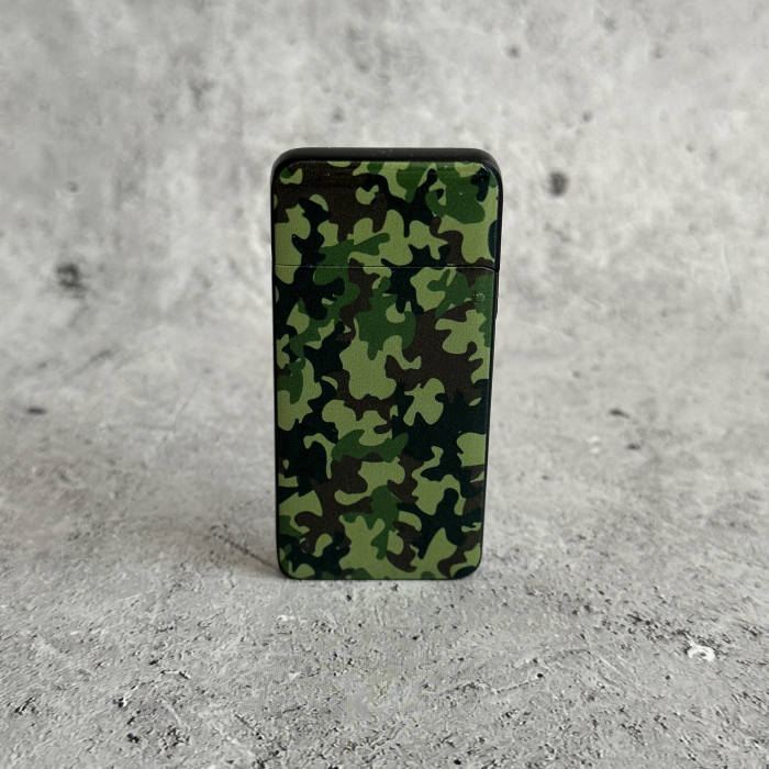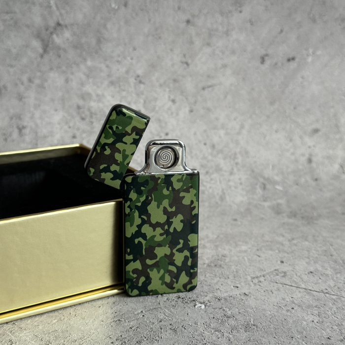 USB зажигалка камуфляж зеленая, спираль, ультратонкая