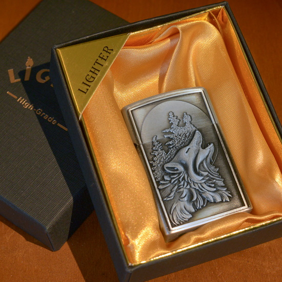 Зажигалка газовая турбо Волк серебро