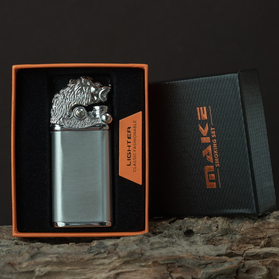 ---Зажигалка турбо газовая Голова льва
